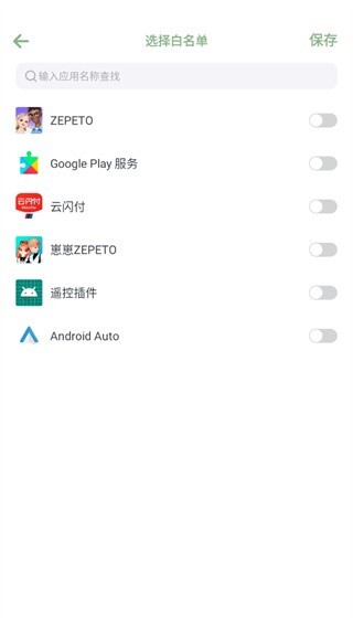 5、挑选你打算添加到白名单的应用,确认无误后点击【保存】,从而完成设置。