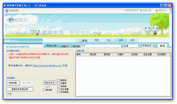 旺旺群号搜索工具是一款免费软件,能够根据用户设定的条件,搜索大量旺旺群信息,是您进行产品宣传,网站推广以及网络营销的最好帮手! 本软件为绿色版,不需要安装,解压后直接使用。