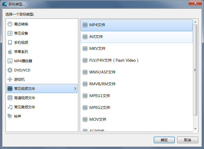 2、再有就是在左侧找到我们所需要的目标视频格式