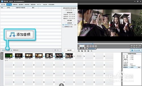 接着,还可以切换到“音频”面板,点击“添加音频”按钮,为视频插入美妙动听的音乐。