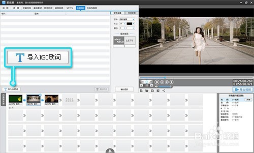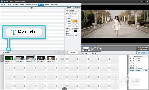 然后,切换到“MTV”面板或“卡拉OK”面板,点击“导入LRC歌词”按钮或“导入KSC歌词”按钮,一键导入歌词,智能渲染MTV或卡拉OK字幕特效,几秒钟就能制作专业级的MV和卡拉OK视频。