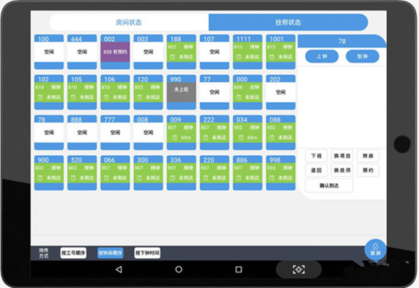 1、到店扫码,无人收银:客人可以扫码自助点单,自由随心,同时迎宾立马了解客人的消费记录、会员级别、余额、消费喜好等信息,向客人精准推荐服务项目。客人在房间可扫码呼叫服务、点单、查询消费清单、自助办卡、自助结帐。宾客可以在手机上给客人点排技师、安排项目和茶水。支持手机选牌,通过技师图片、评价、技术等级等等,挑选技师。2、全自动智能钟房:集成了全国20000+足浴店的各类排钟规则,通过大数据、云计算,全面支持大轮排、上钟点排数。支持多套牌、附加牌、飞轮、补轮。支持多班别、多项目、多等级、男女混合排等多种自动排钟。彻底告别钟房。