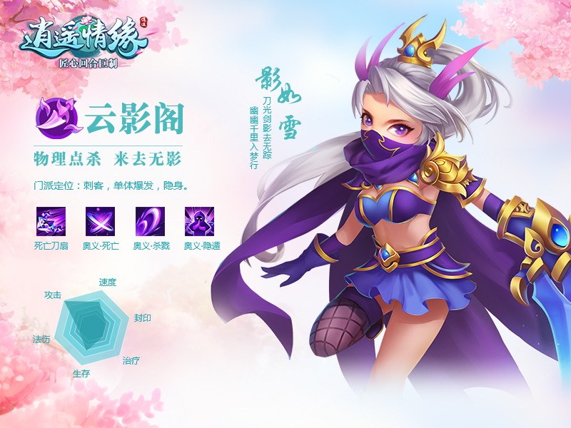 特色技能:死亡刀扇、奥义·死亡、奥义·杀戮、奥义·隐遁