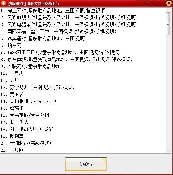 载图助手是一款电商平台图片下载器,可以下载阿里、京东、天猫、苏宁易购,蘑菇街等网店图片,可以批量下载,分类保存,支持智能断点续传,是网络贸易辅助能手。【软件功能】