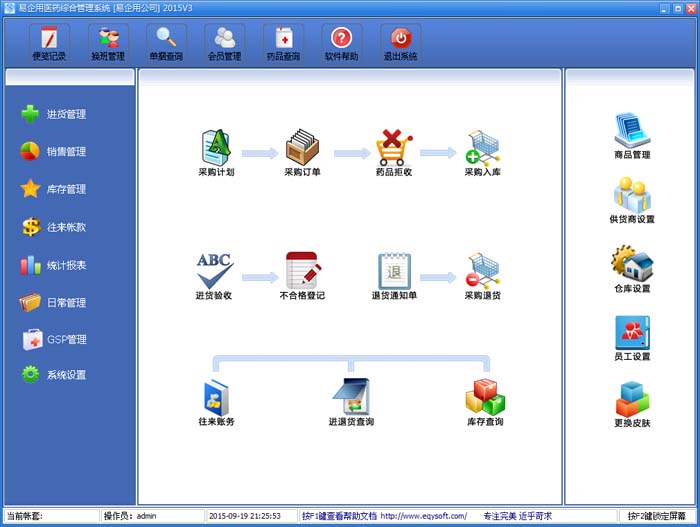 易企用医药进销存系统是一款专业的医药销售管理软件,其中包含药品销售管理系统,会员管理系统,库存管理系统,财务管理系统等模块。软件界面设计简洁,美观,其人性化的软件流程,使普通用户不需培训也能很快掌握软件使用方法。易企用医药销售管理系统完美融合了易企用进销存软件和易企用会员管理软件的强大功能,广泛适用于公司企业,医院,商场,超市,门店,药店等用于医药销售管理,库存管理,财务管理等,客户管理,会员管理等场合,是您企业进行信息化管理的理想工具。【软件功能】