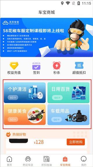 4. 开启车宝商城,便能选购日用百货以及软件联名产品。