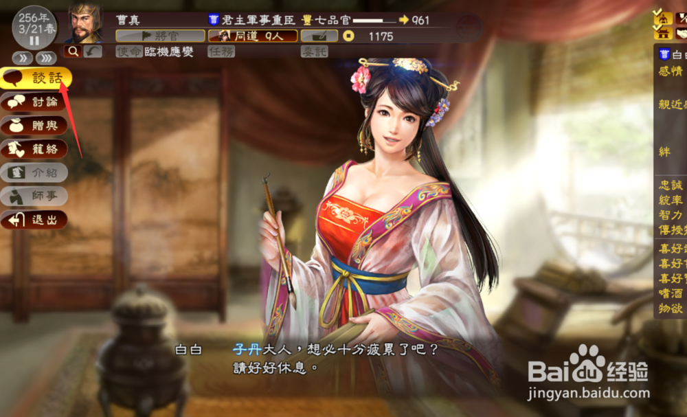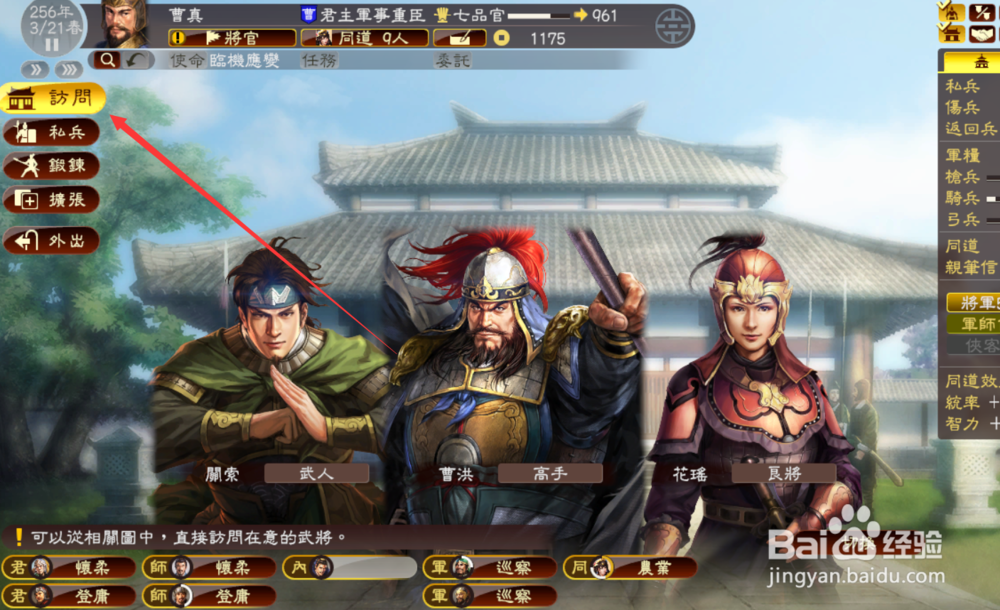 完了之后,去对象所在的都市,一般养女可以直接编辑进同道,其他势力的女武将就不能了,但我们可以去找她。