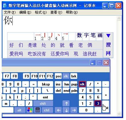 1、利用小键盘输入:数字五笔载入后,会自动判断NumLock状态,并打开NumLock,如果未能打开,请先手工打开NumLock键。只有NumLock键处在打开状态下,才能利用数字小键盘输入汉字。