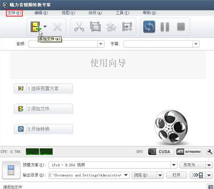 视频转换1、从本站将曦力音视频转换专家官方下载,解压安装后,点击“添加文件”按钮,选择需要转换的视频源文件,然后选择你的预制方案