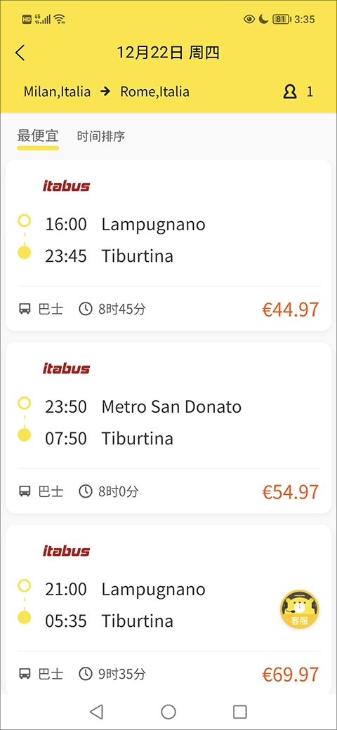 3、随后,待看清车票内容,便可点击预定。