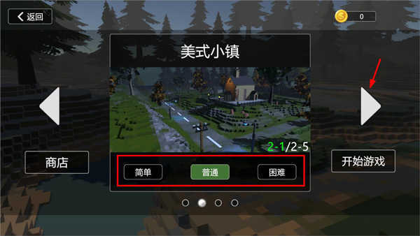 2、选定模式后,玩家能够挑选游戏难度与场景(像小镇、工地、私人豪宅小岛之类);