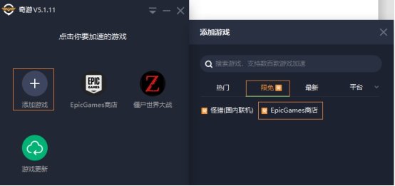 2.登录奇游客户端并选择游戏一键加速