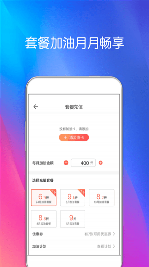 充值优惠套餐带来丰厚折扣优惠,助你节省下大笔花费一键提交领取申请,审核速度超快,油卡在手轻松加油