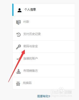 3、在弹出的页面当中选中密码与安全。