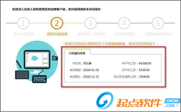 软件安装完成后,点击界面上的【立即体验】按钮(或点击桌面“自然人税收管理系统扣缴客户端”快捷方式),即进入注册流程。注册一共分为五个步骤。