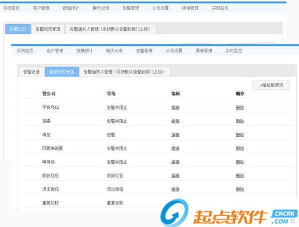 除了能够实时显示业务员在线情况外,还可以指定发生以下情况时,通过微信上报给指定人或管理者: