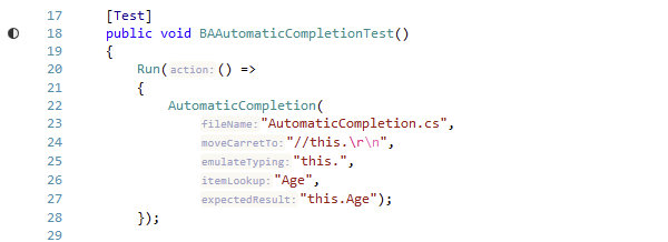 【C#和VB.NET的内联参数名称提示】代码编辑器添加了参数名称提示,使C#和VB.NET代码更易读。当你在方法调用中使用文字时,ReSharper使用参数的名称对其进行注释,从而更容易理解它表示的值。