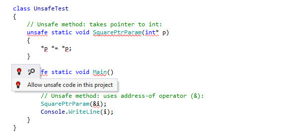 此项目中提供了一个新的快速修复,允许不安全的代码。