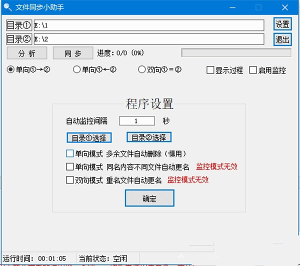 文件同步小助手是一款易语言做的同步文件软件,功能很简单,为了做同步盘(经常要移动硬盘和U盘或者电脑的某个目录必须保持同步),设置好目录后,支持单向或者双向同步,可以使用常驻后台监控功能(注意设置中的提示和选择,不要误操作,以免数据丢失!)