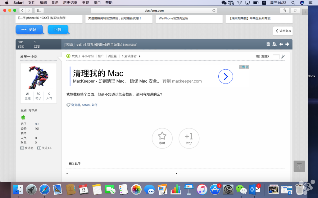 safari浏览器如何全屏截图?组合按键