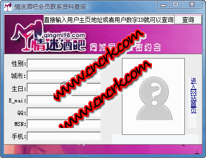 情迷酒吧查询器能够实现同城亲密交友情迷酒吧网站vip查询其他会员联系资料的功能,直接提供会员数字id或者用户主页地址就可直接查询到任意会员的联系方式。
