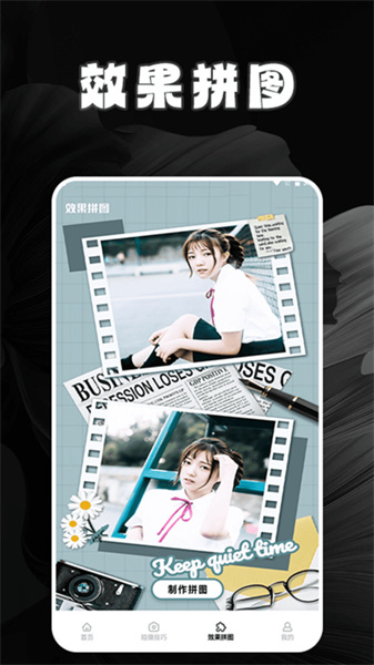 2、一站式效果拼图功能,能轻松满足你的需求,让你的照片更具创意与个性化。