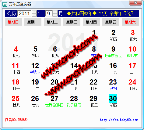 万年历查询器是一款符合国人习惯的万年历查询工具,该软件不但能方便查询节假日、黄道吉日、宜忌,还能精确的推算日期,帮您在出行、结婚时提前安排时间,而且方便易用,傻瓜式操作,是最具权威的在线万年历查询器。