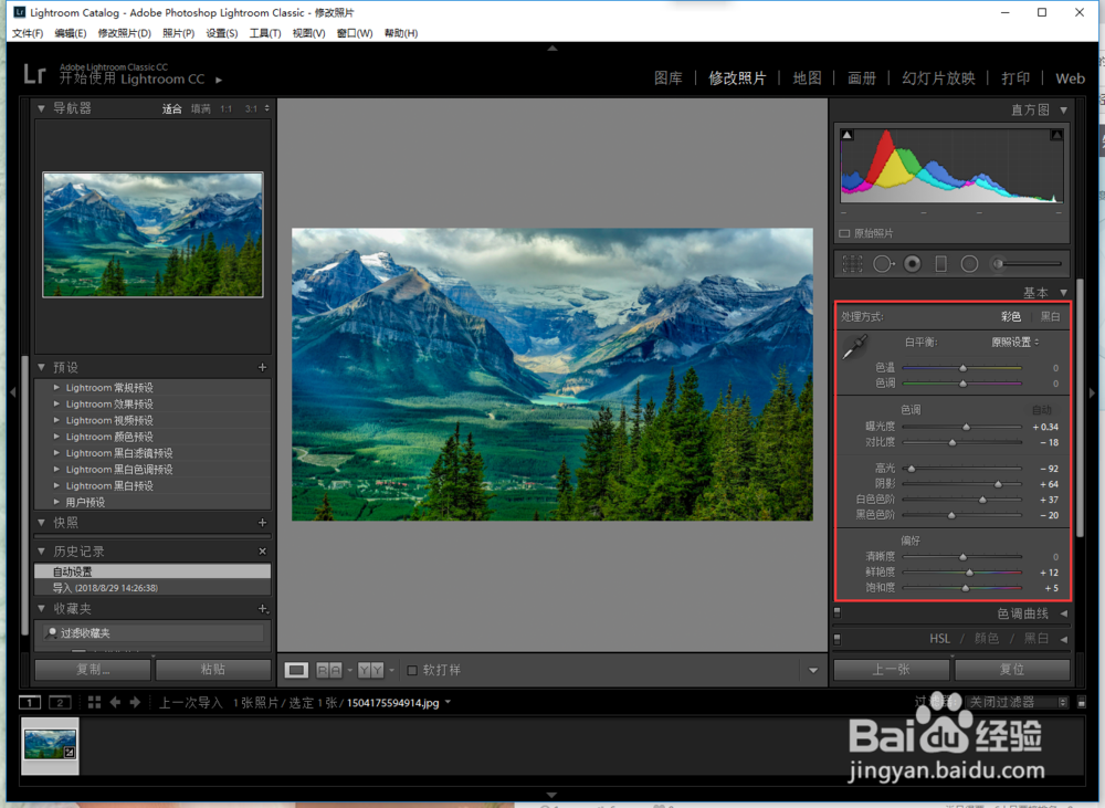 也可以通过Lightroom提供的一些预设来快速调整图片效果哦。