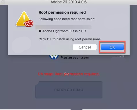 lr cc 2019破解补丁提示需要Root权限,点击【OK】。