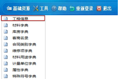 2.点击界面上方“基础资源区”在下拉框中选择“工程信息”,工程信息分为3个界面:基本信息、施工部位、工程效果图。