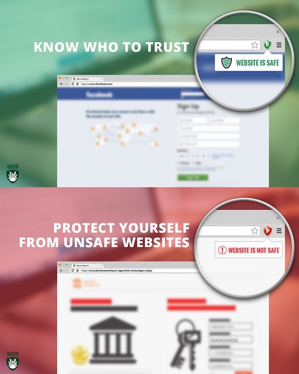 1.Chrome网络保护插件安装成功后,用户在使用浏览器浏览网页时,如果网页是安全的,那么在浏览器的右上方可以看到第一张所示的绿色标记。2.相反,如果用户浏览器的网站是钓鱼网站,网络保护器插件的图标就会变成红色,给予用户警告提醒。