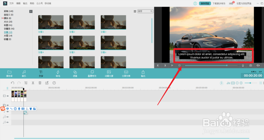 5、使用鼠标双击文字字幕,就可以对文字进行编辑修改了。