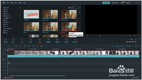 3、选择一个滤镜,把它拖入轨道上,或者是点击滤镜上加号。