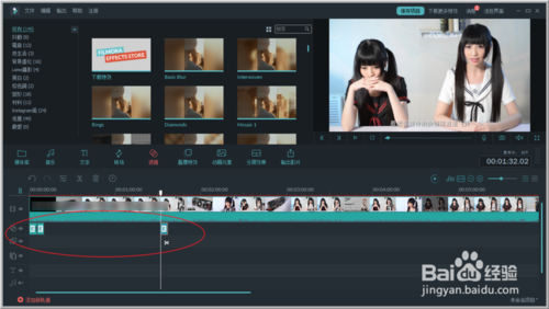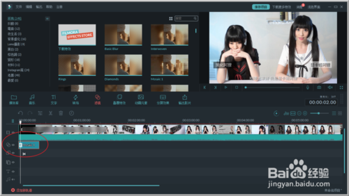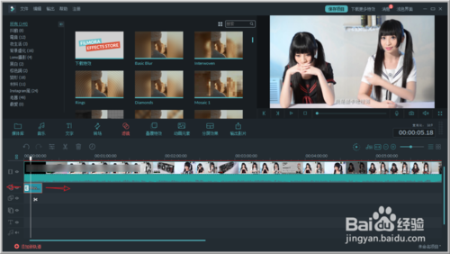 2、此时视频会进去了时间轨道上,点击滤镜功能。