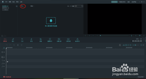 1、把视频素材导入到了软件之后,点击素材,上面有个+。