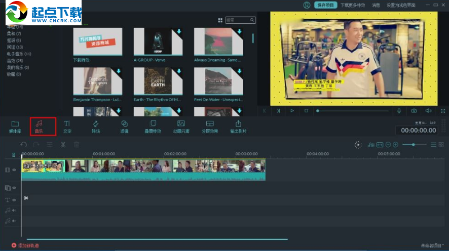 4、用户点击【音乐】按钮,并进入音乐添加界面。