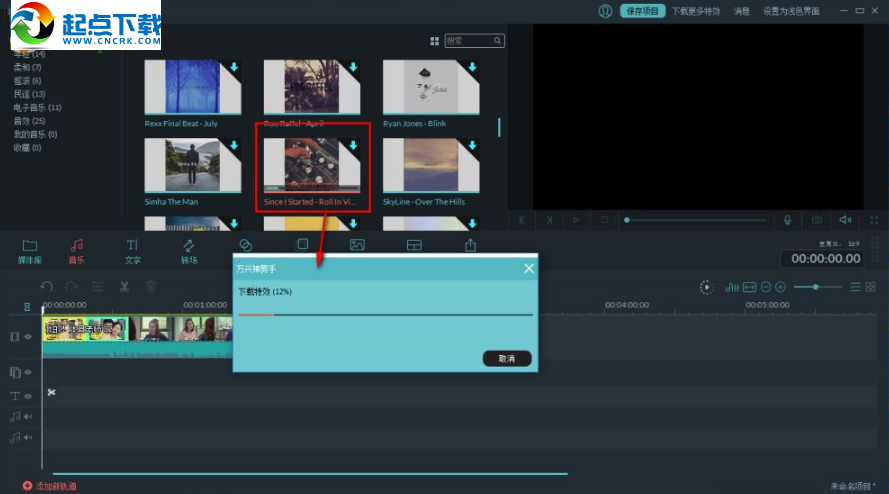 6、下载完成后,我们可以将音乐拖动至音轨时间轴上。