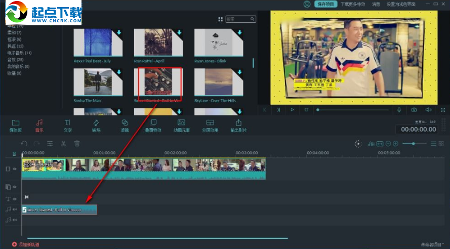 7、用户可以通过左右移动音轨时间轴对应相依的视频时间轴(设置音乐对应的视频的位置)。