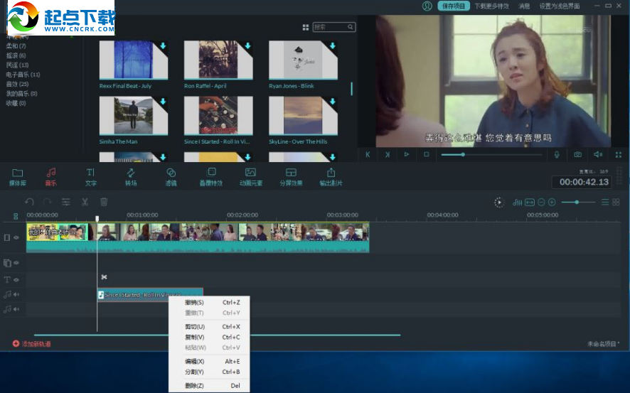 3、基础剪辑:强大的时间轴:多达100条视频轨道,随心所欲添加,完全满足视频叠加效果的需求。