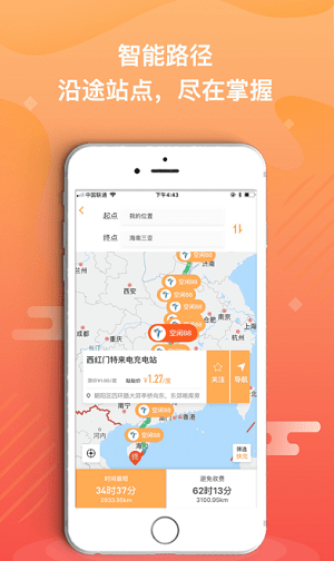 1、智能推荐,为您推荐身边靠谱的充电站;2、路径规划,满足您开电动车长途出行需求;