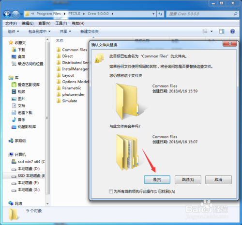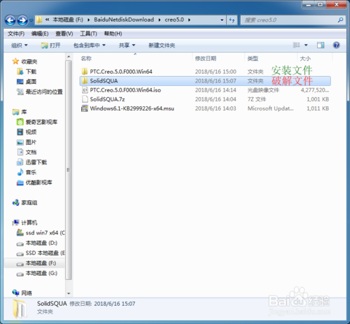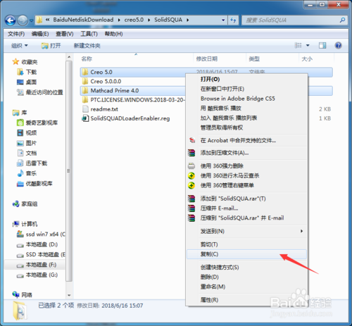 10、接着复制第二步解压出来破解文件夹(SolidSQUA)里面的(Creo 5.0和Mathcad Prime 4.0)文件到安装目录里面进行粘贴或替换