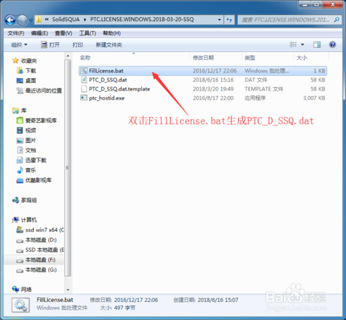 2、然后点击打开解压后的破解文件夹(SolidSQUAD/PTC.LICENSE.WINDOWS.2018-03-20-SSQ)双击FillLicense.bat后按任意键结束生成(PTC_D_SSQ.dat)License文件,最后复制生成的(PTC_D_SSQ.dat)License文件到自己的安装目录。例如:E:\Program Files\PTC5.0\License