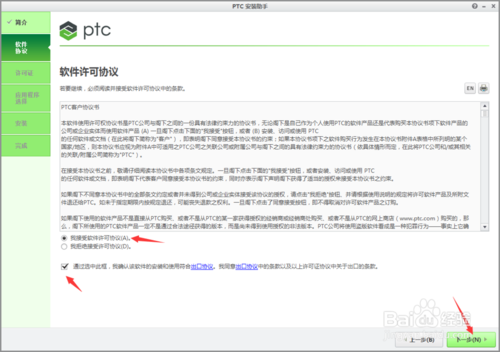 5、出现软件协议界面然后勾选我接受等选项点击下一步。