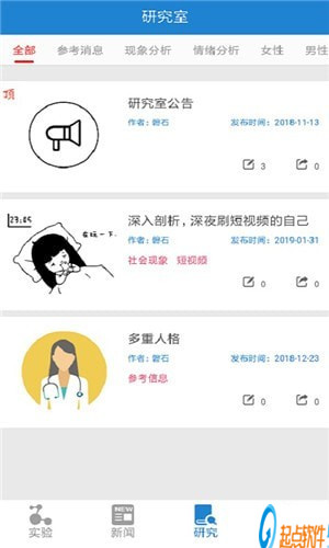 心理实验室app是专注于为用户提供可靠、有用、易读的心理学知识的应用,研究内容涵盖实验心理学、社会心理学、语言学(修辞学)、逻辑学等诸多领域。