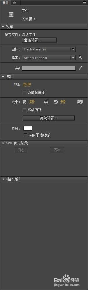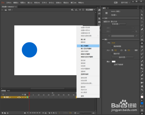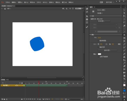 1、启动Animate CC软件,新建一个【WebGL(预览)】文档。