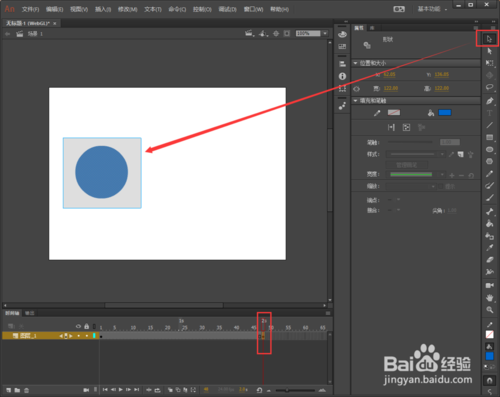 8、按回车键就可以预览播放补间形状动画啦。可以发现已经从圆形变成了方形的动画。就是这么简单啦