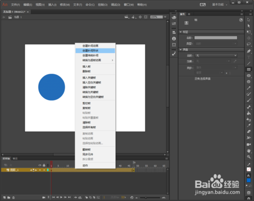 6、在时间轴上选中1-2S的所有帧,鼠标右键点击【创建补间形状】