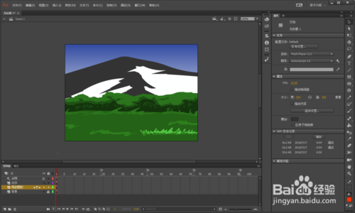 7、创建好后可以看到时间轴上的部分变成了绿色,中间有个黑色的箭头,证明以及创建好了。