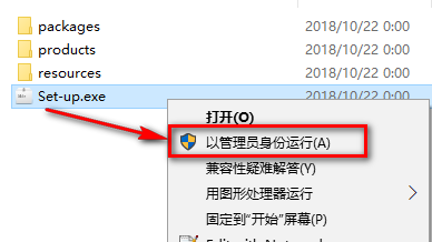 2、先断网,找到并选中【Set-up】鼠标右键“以管理员身份运行”
