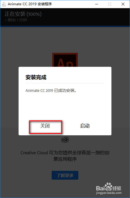 5、点击“关闭”(如果点启动,会弹出一个错误提示窗口,关闭即可)